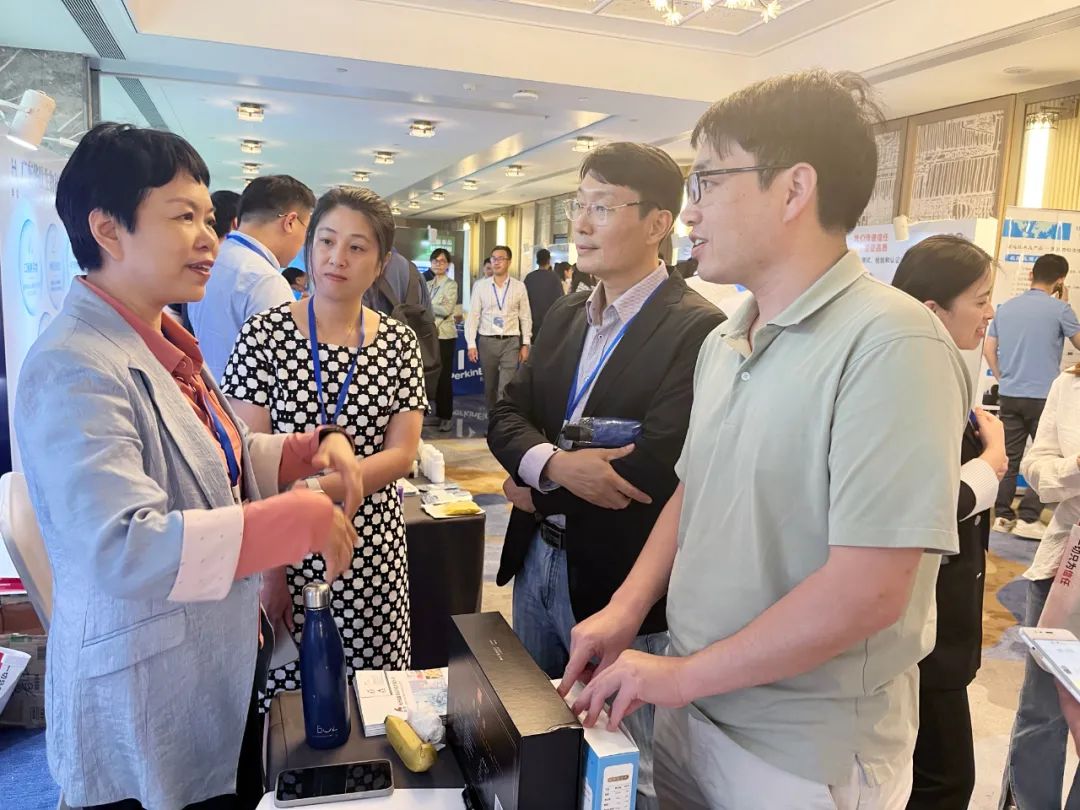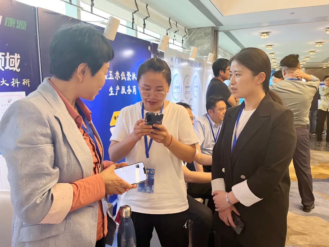 康源展位馮教授和工作人員與客戶親切交流
